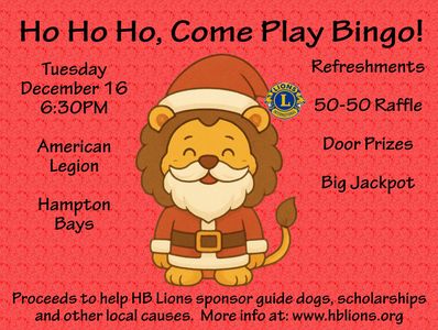 Bingo helps the Hampton Bays Lions Club in sponsoring guide dogs for the blind.