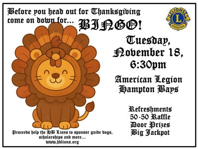 Bingo helps the Hampton Bays Lions Club in sponsoring guide dogs for the blind.